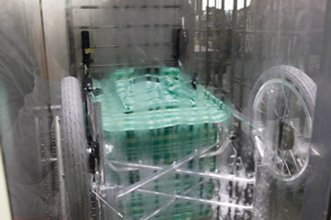 今までの車椅子洗浄は、タオルで拭いたり高圧洗浄機で洗う方法しかありませんでした。しかしその方法では、見た目はきれいでも汚れ残しがあったり、しっかりした除菌ができませんでした。弊社では東北初の設備導入で、車椅子を丸ごと洗浄はすることができます。隅々まできれいに洗浄し、除菌もしっかり行うことが可能になりました。定期的に洗浄することで、新品のようなピカピカな状態と清潔を維持でき、さらに器具の長持ちにも繋がります。